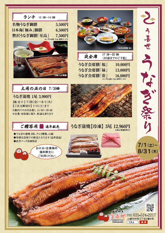7/1~8/31 宇喜世の「うなぎ祭り」のご案内